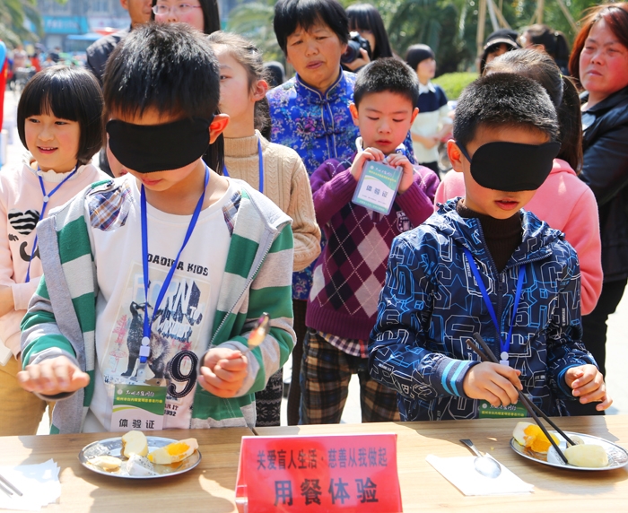 ??? 3月22日下午,衢州市慈善總會(huì)、衢州市人民醫(yī)院在市區(qū)斗潭公園舉辦了一場(chǎng)盲人體驗(yàn)活動(dòng),讓體驗(yàn)者體會(huì)盲人在黑暗的世界生活。社會(huì)各界愛(ài)心人士參與了此次公益活動(dòng)。