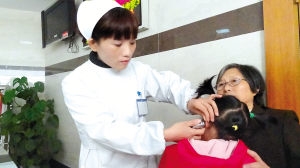 林小娟在檢測患兒體溫