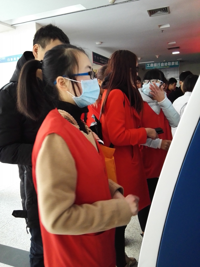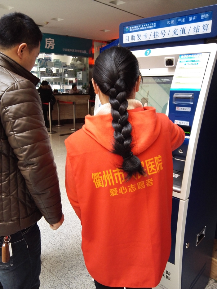 ??? 徐鑫洋、湯美娟、湯玉卿、陳夏雯、徐嘉妮、葉佳怡、周育存、汪潔瓊、李興江、余照坤、王宇寧、陶月雯、范佩之、童家欣等14人在衢州市人民醫(yī)院做志愿者,主要來自寒假學生志愿者。 志愿者們主要為患者指路引導(dǎo),陪伴行動不便、年老體弱患者就診,指導(dǎo)患者自助服務(wù)機使用方法,引導(dǎo)患者化驗前取號、打印化驗單,協(xié)助門診大廳工作人員疏導(dǎo)病人。
