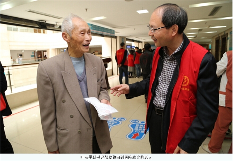 ??? 當(dāng)日,院長(zhǎng)陳震宏、院辦主任汪英俊等醫(yī)院?jiǎn)T工也在醫(yī)院進(jìn)行志愿服務(wù)。