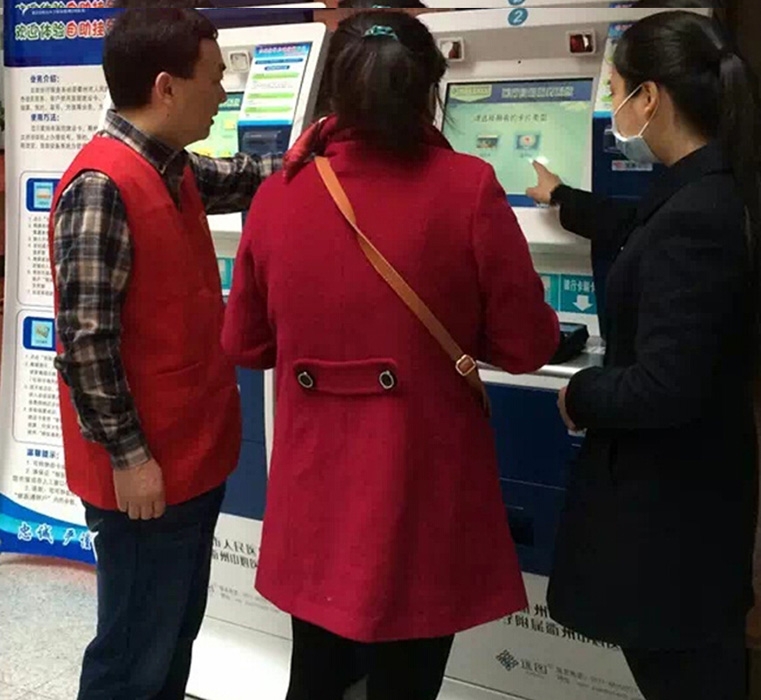 廖利軍幫助患者使用自助掛號(hào)機(jī)