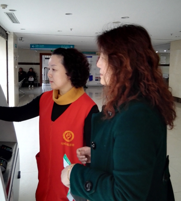 ?? 王建中、王金妹、王宇寧、周建珍、羅月蘭、朱慶文、李衛(wèi)華、陳娟、祝美潔、陳紅杏等10人在衢州市人民醫(yī)院做志愿者,主要來(lái)自社會(huì)志愿者和本院志愿者。 志愿者們主要為患者指路引導(dǎo),陪伴行動(dòng)不便、年老體弱患者就診,指導(dǎo)患者自助服務(wù)機(jī)使用方法,引導(dǎo)患者化驗(yàn)前取號(hào)、打印化驗(yàn)單,協(xié)助門(mén)診大廳工作人員疏導(dǎo)病人。