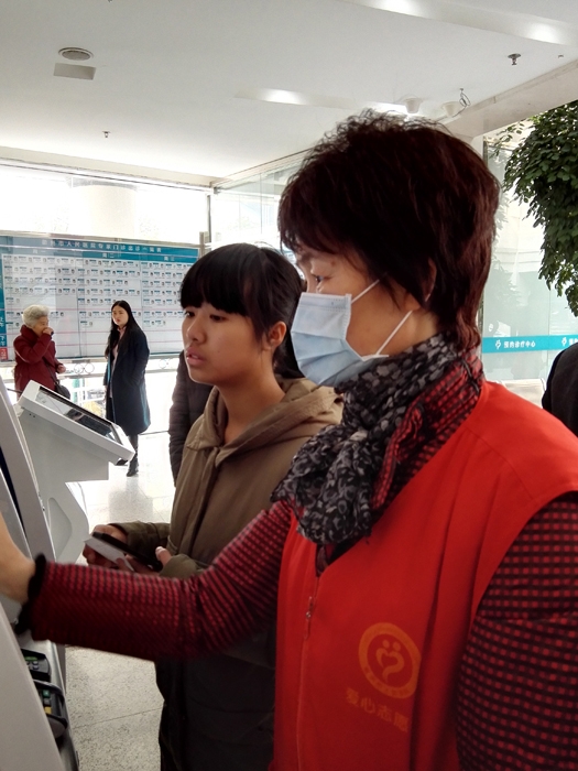 ??? 翁文淵、繆惠芳、王琍穎、葉根倪、豐學(xué)謙、陳彩英、葉麗婷、陸佳佳、鄭紅燕、賴如平、朱楊帆、蘇秀萍、徐幼平、范華欣、王莉、陳根清等16人在衢州市人民醫(yī)院做志愿者,主要來自社會志愿者和本院志愿者。 志愿者們主要為患者指路引導(dǎo),陪伴行動不便、年老體弱患者就診,指導(dǎo)患者自助服務(wù)機使用方法,引導(dǎo)患者化驗前取號、打印化驗單,協(xié)助門診大廳工作人員疏導(dǎo)病人。
