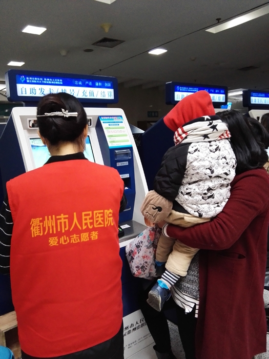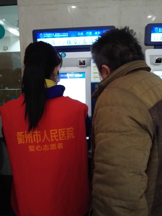 ??? 周素珍、潘正照 、譚惠娟、張月萍、徐素珍、胡曉芬、吳云霞、徐靜、毛敏娜、張露萍、鄭茜茜、徐友婷、白永風(fēng)、鄭紅仙、姚素晴等15人在衢州市人民醫(yī)院做志愿者,主要來自社會志愿者和本院志愿者。 志愿者們主要為患者指路引導(dǎo),陪伴行動不便、年老體弱患者就診,指導(dǎo)患者自助服務(wù)機使用方法,引導(dǎo)患者化驗前取號、打印化驗單,協(xié)助門診大廳工作人員疏導(dǎo)病人。