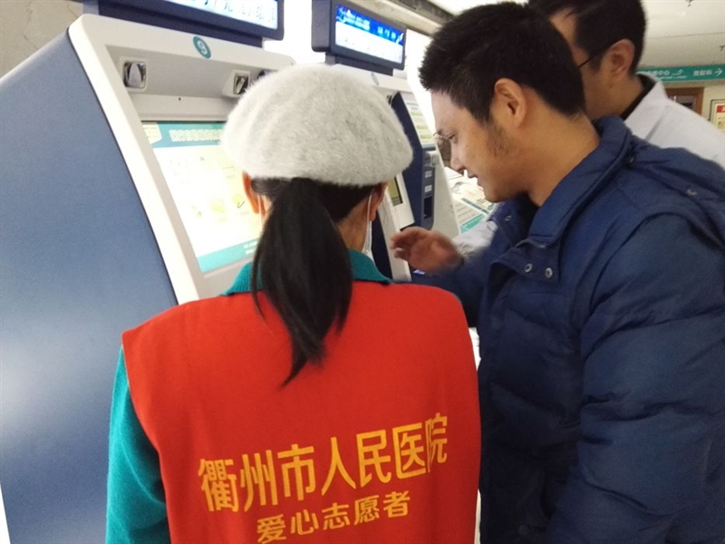 ??? 翁文淵、洪波、黃玲、邱武佩、嚴(yán)紅雁、王宇寧等6人在衢州市人民醫(yī)院做志愿者,主要來自社會志愿者。 志愿者們主要為患者指路引導(dǎo),陪伴行動不便、年老體弱患者就診,指導(dǎo)患者自助服務(wù)機(jī)使用方法,引導(dǎo)患者化驗(yàn)前取號、打印化驗(yàn)單,協(xié)助門診大廳工作人員疏導(dǎo)病人。