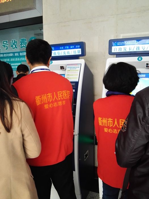 ??? 翁文淵、洪波、徐禮峰、葉根倪、王金妹、楊建琴、盧金仙、黃素仙、繆惠芳、胡美華、張?jiān)缕?、徐蘇珍、胡曉芬、周土蘭、邱武佩、嚴(yán)紅雁、王宇寧等17人在衢州市人民醫(yī)院做志愿者,主要來(lái)自社會(huì)志愿者。 志愿者們主要為患者指路引導(dǎo),陪伴行動(dòng)不便、年老體弱患者就診,指導(dǎo)患者自助服務(wù)機(jī)使用方法,引導(dǎo)患者化驗(yàn)前取號(hào)、打印化驗(yàn)單,協(xié)助門(mén)診大廳工作人員疏導(dǎo)病人。