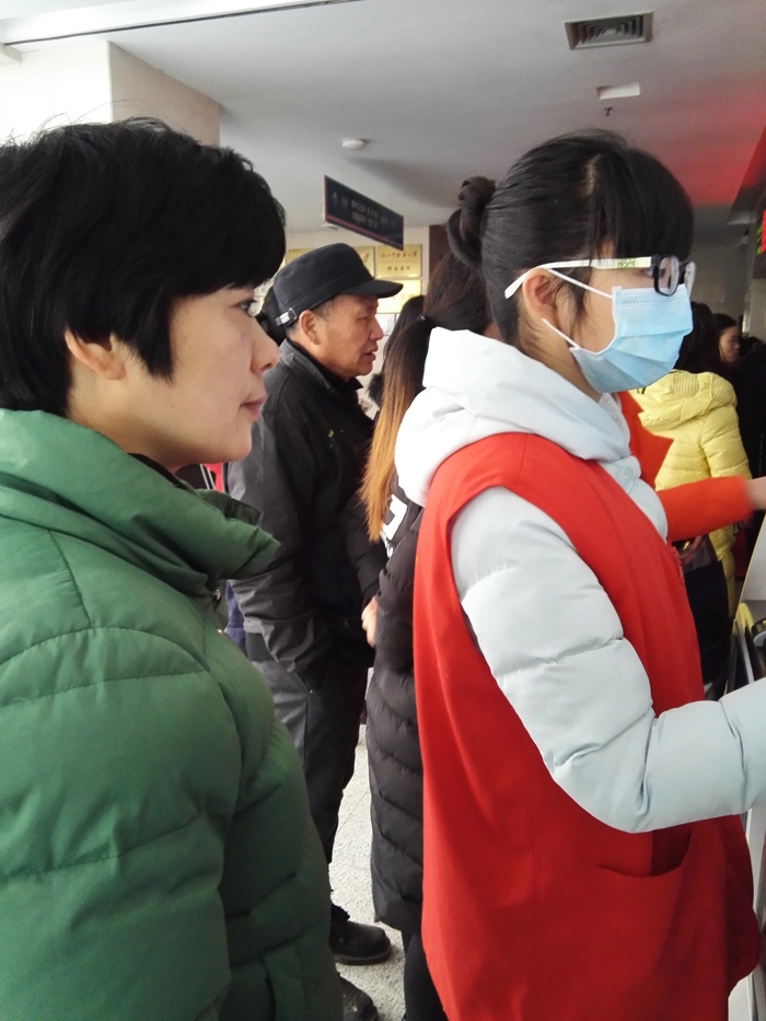 ??? 徐鑫洋、湯美娟、湯玉卿、陳夏雯、徐嘉妮、葉佳怡、周育存、汪潔瓊、李興江、余照坤、王宇寧等11人在衢州市人民醫(yī)院做志愿者,主要來(lái)自寒假學(xué)生志愿者。 志愿者們主要為患者指路引導(dǎo),陪伴行動(dòng)不便、年老體弱患者就診,指導(dǎo)患者自助服務(wù)機(jī)使用方法,引導(dǎo)患者化驗(yàn)前取號(hào)、打印化驗(yàn)單,協(xié)助門診大廳工作人員疏導(dǎo)病人。
