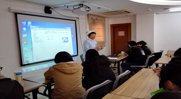 廖小方副院長、孟慶玲講師在給志愿者們授課