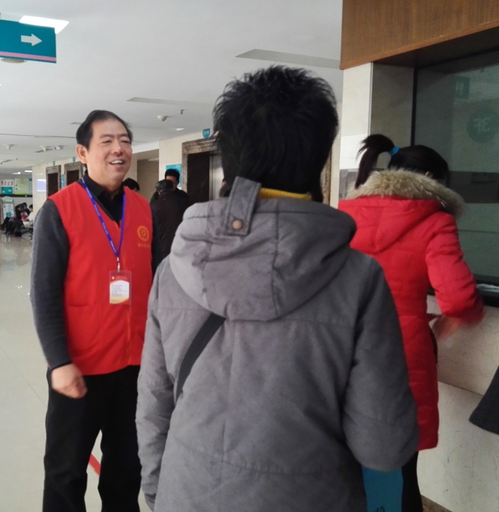 ??? 羅月蘭、王建中、王宇寧、朱厚清、毛菊仙、羅益芳、許建、于娟、周純、洪波、張俊晴、葉根倪、蘭利云等13人在衢州市人民醫(yī)院做志愿者,他們服務(wù)累計時間600余小時。志愿者們主要在門診大廳一樓至五樓接受患者咨詢、引導(dǎo)自助服務(wù)機使用方法、流動服務(wù),幫助身體虛弱及身心障礙者等提供引導(dǎo)、協(xié)助門診大廳工作人員疏導(dǎo)病人。