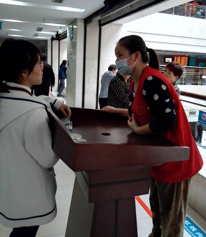 志愿者日志58 文章來源:門診部 作者: 點擊數:9670 更新時間:2016-01-05 2015.年12月27日???? ?星期日 ??? 許建偉、王霞、宋祝敏美、季芳菲、程琳、張波、徐麗瓊、趙凌斐、鄭迎霞、黃燕、徐靜等11人在衢州市人民醫(yī)院做志愿者。志愿者們主要在門診大廳一樓至五樓接受患者咨詢、引導自助服務機使用方法、流動服務、幫助身體虛弱及身心障礙者等提供引導、協助門診大廳工作人員疏導病人。 ? ? 上一篇: 衢州市人民醫(yī)院愛心服務中心(試行) 下一篇: 在市人民醫(yī)院感受真情------一位志愿者在醫(yī)院服務感言