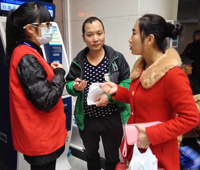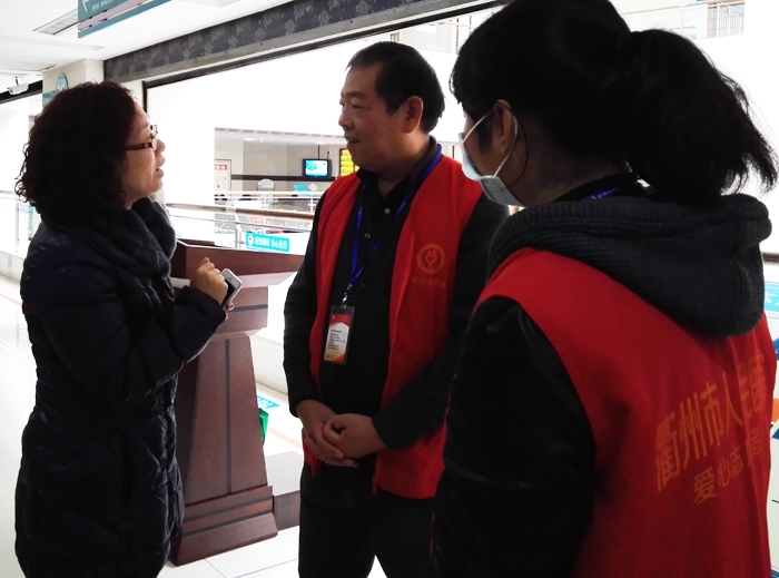 ??? 羅月蘭、王建中、王宇寧、朱厚清、楊君梅、馬思宸、曹雅嚴、何玲娜、毛菊仙、羅益芳、陳佳麗、楊冰倩、徐雪芳、張燕、柴靜、林秀秀、陳愛芬等17人在衢州市人民醫(yī)院做志愿者,他們服務累計時間600余小時。志愿者們主要在門診大廳一樓至五樓接受患者咨詢、引導自助服務機使用方法、流動服務,幫助身體虛弱及身心障礙者等提供引導、協(xié)助門診大廳工作人員疏導病人。