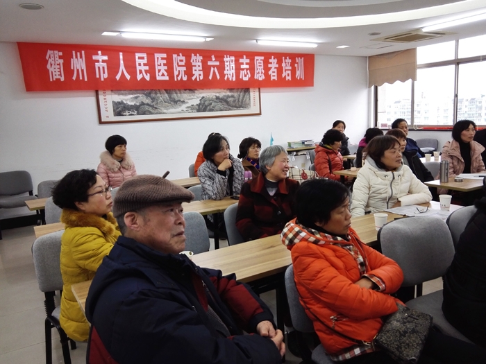 我院開展第六期志愿者培訓 文章來源:門診部 作者:徐天生 曹敏 點擊數:8961 更新時間:2015-12-28 ??? 12月25日下午,醫(yī)院愛心服務中心在門診十樓示教室開展第六期志愿者培訓——醫(yī)院消防安全知識講座。40余名志愿者參加了培訓。 ? ? ??? 醫(yī)院保衛(wèi)處處長鄭建軍為大家講解了如何預防火災、應對火災等消防安全知識。通過培訓,增加了志愿者們今后在生活、工作中的消防安全意識,積極參與安全管理工作。 上一篇: 衢州市人民醫(yī)院愛心服務中心(試行) 下一篇: 在市人民醫(yī)院感受真情------一位志愿者在醫(yī)院服務感言