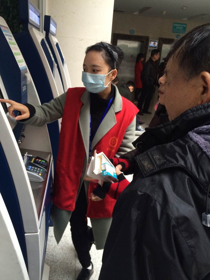 ??? 劉紅英、吳洪麗、華時(shí)珍、王婧、徐婷婷、張小芳、老珣姬、陳洪雨、朱景紅、翁九良等10人在衢州市人民醫(yī)院做志愿者。志愿者們主要在門診大廳一樓至五樓接受患者咨詢、引導(dǎo)自助服務(wù)機(jī)使用方法、流動(dòng)服務(wù)、幫助身體虛弱及身心障礙者等提供引導(dǎo)、協(xié)助門診大廳工作人員疏導(dǎo)病人。