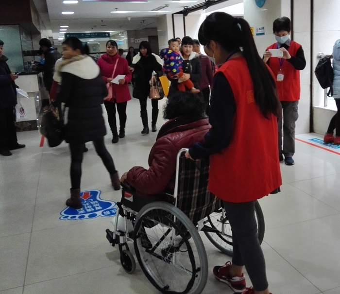 ??? 葉時(shí)楫、方月升、楊美姣、黃玲、方志豪、劉雪珍、曹愛(ài)珍、張俐、吳明珍、朱愛(ài)英、徐理華、姜婷婷、徐佳、王瑜、張雪麗、吳燕貞、鄭靜、李祎等18人在衢州市人民醫(yī)院做志愿者,他們服務(wù)累計(jì)500余小時(shí)。志愿者們主要在門診大廳一樓至五樓接受患者咨詢、引導(dǎo)自助服務(wù)機(jī)使用方法、流動(dòng)服務(wù)、幫助身體虛弱及身心障礙者等提供引導(dǎo)、協(xié)助門診大廳工作人員疏導(dǎo)病人。