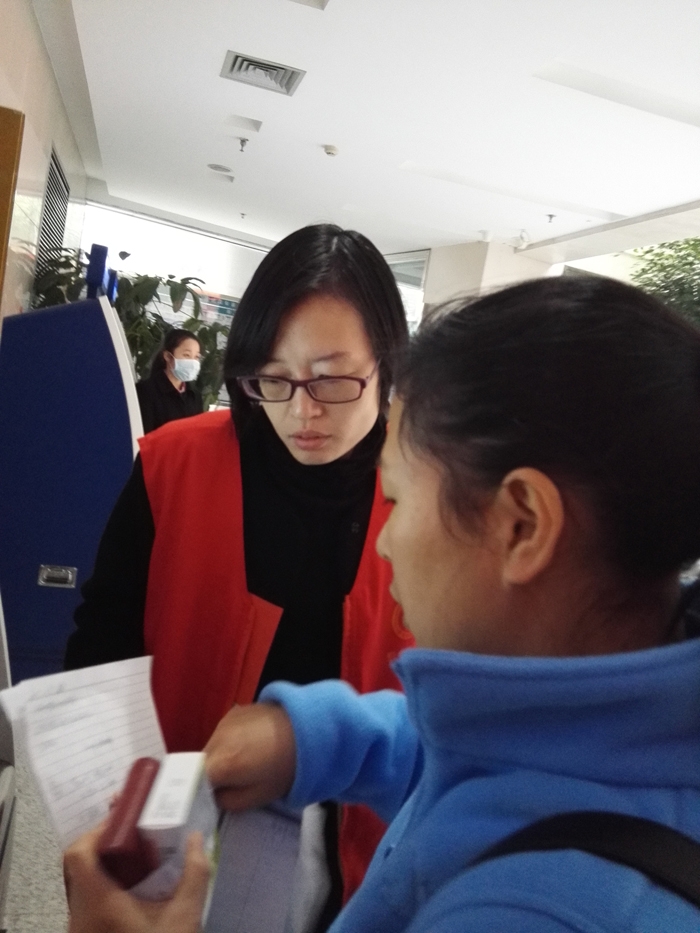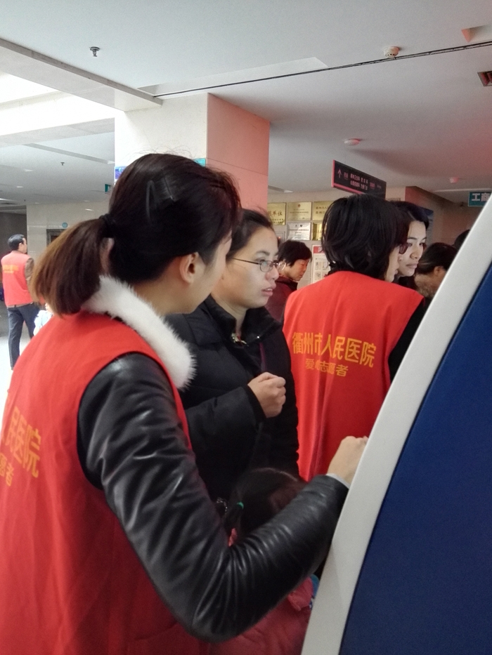 ???? 曾素慶、丁銀斌、蔣瑞芳、柳雪英、王曉潔、吳楊芬、余霞、葉惠球等8人在衢州市人民醫(yī)院做志愿者。志愿者們主要在門診大廳一樓至五樓接受患者咨詢、引導(dǎo)自助服務(wù)機(jī)使用方法、流動(dòng)服、幫助身體虛弱及身心障礙者等提供引導(dǎo)、協(xié)助門診大廳工作人員疏導(dǎo)病人。
