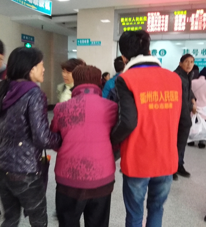 ??? 葉時(shí)楫、劉雪珍、方月升、鄭靜、李祎、曾琳琳、徐靜、鄭曉珍、陳銘、徐曉勛、賴一芳、黃玲等12人在衢州市人民醫(yī)院做志愿者,他們服務(wù)累計(jì)400余小時(shí)。志愿者們主要在門診大廳一樓至五樓接受患者咨詢、引導(dǎo)自助服務(wù)機(jī)使用方法、流動(dòng)服務(wù)、幫助身體虛弱及身心障礙者等提供引導(dǎo)、協(xié)助門診大廳工作人員疏導(dǎo)病人。