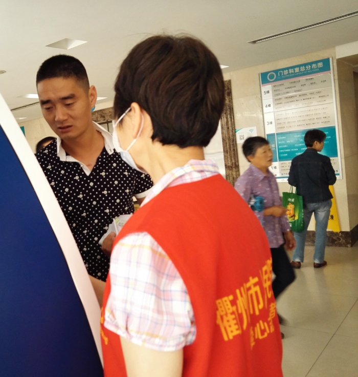 ??? 2015年10月30日,葉時(shí)楫、陸牡丹、桂慧娟、方月升、崔榮紅、徐佳、王琍穎、黃玲等8人在衢州市人民醫(yī)院做志愿者,累計(jì)服務(wù)時(shí)間300余小時(shí)。主要在門診大廳一樓至五樓接受患者咨詢、引導(dǎo)自助服務(wù)機(jī)使用方法、流動(dòng)服務(wù),幫助身體虛弱及身心障礙者等提供引導(dǎo)、協(xié)助門診大廳工作人員疏導(dǎo)病人。