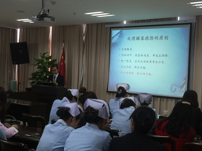??? 此次授課的老師均來自本院,曾接受臺灣知名護(hù)理行政管理、服務(wù)規(guī)范化專家許素貞的禮儀培訓(xùn)。著重從崗位形象、著裝、語言技巧、行為禮儀、接待禮儀、電話禮儀、抱怨應(yīng)對等十二個方面進(jìn)行培訓(xùn),講課內(nèi)容生動、貼近現(xiàn)實、互動豐富,受到了聽課人員的一致好評。