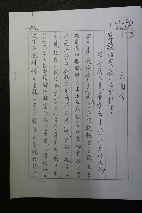 感謝信(致余俊華醫(yī)生)