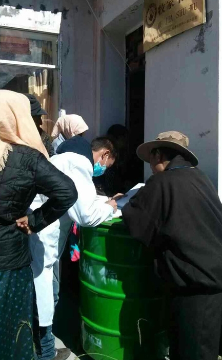 ??? 經(jīng)過短暫休整與適應(yīng),我所在的流調(diào)四組去的第一個篩查點是古露鎮(zhèn)俄瑪村。我們一行3人驅(qū)車4小時來到達俄瑪村居委會,發(fā)現(xiàn)當(dāng)?shù)貤l件異常艱苦,沒有合適的B超檢查床,只能搬來桌椅,作為臨時擺放B超機及檢查床。剛剛擺放好開始檢查,又傳來了停電的消息。在西藏,停電是再普遍不過的事情??粗鹤永镌絹碓蕉嗟哪撩?,為了不讓他們失望,我們在用盡了B超機內(nèi)置的電池后,村長終于搬來了一臺發(fā)電機,不敢耽誤一分鐘,終于完成了該村120多人的檢查,回到駐地已是晚上九點多。