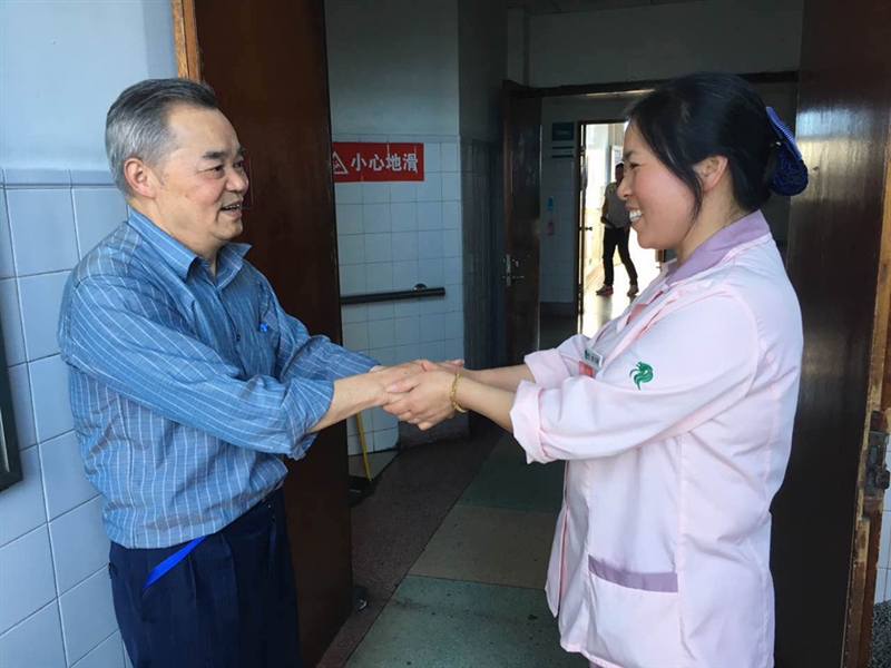 ??? 當(dāng)徐英和家屬把錦旗送到王阿姨手上時,靦腆的她露出了羞澀的笑容,很多圍觀的病人和家屬都對王阿姨豎起了大拇指,嘖嘖稱贊……