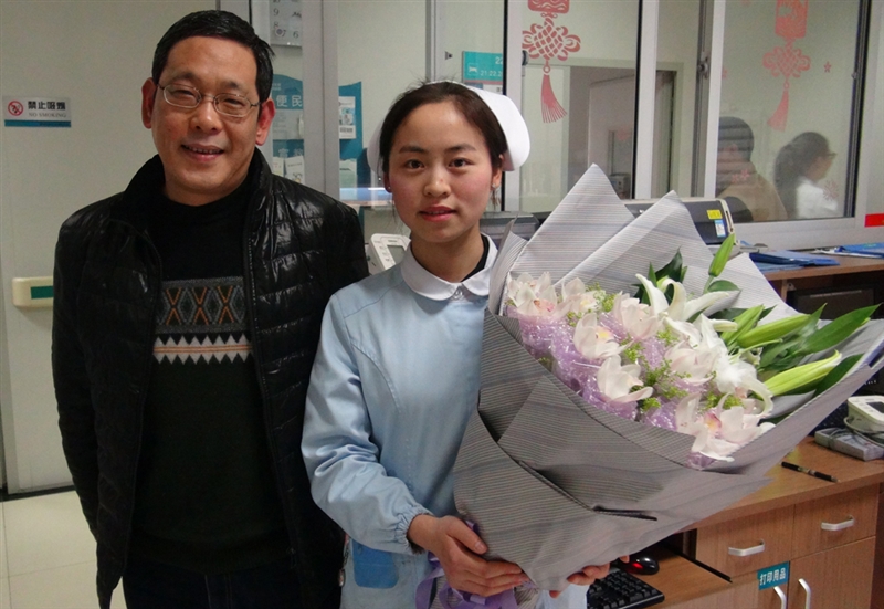 ??? “終于找到你了,好心的姑娘,謝謝……”聽(tīng)說(shuō)要找的好心姑娘就在市人民醫(yī)院上班,3月18日下午三時(shí)許,計(jì)老太的兒子便捧著鮮花趕到醫(yī)院?!澳翘煲皇沁@位好心的姑娘幫忙,兩個(gè)老人可怎么辦呀?”計(jì)老太的兒子激動(dòng)地說(shuō)。
