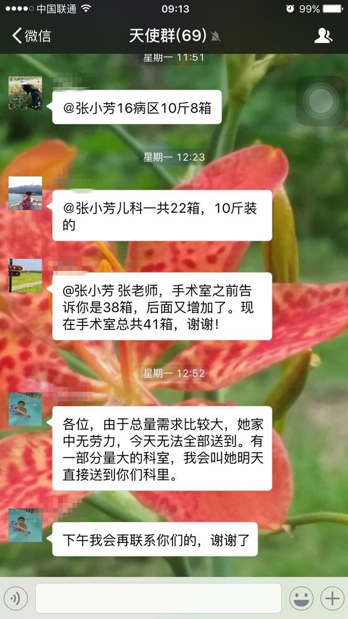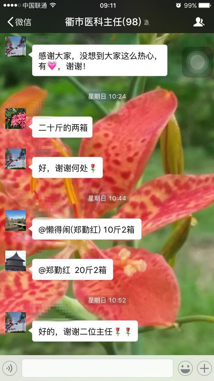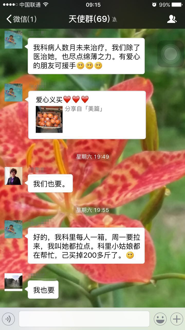 ??? 鄭勤紅一直關(guān)注著這個多難的家庭,得知此事后立即通過微信向院內(nèi)的醫(yī)護人員發(fā)出求助信息,消息一經(jīng)發(fā)出,院內(nèi)的醫(yī)務人員紛紛向謝冬蓮伸出援手,經(jīng)過的路人、看病的患者見此情景也紛紛鼎力相助,十箱、二十箱……熱心的企業(yè)老板得知消息后立即訂購200箱臍橙,向謝冬蓮捐款一萬多元,目前,我院的醫(yī)務人員已經(jīng)幫助謝冬蓮售出600多箱臍橙,為謝冬蓮籌集資金四萬余元。