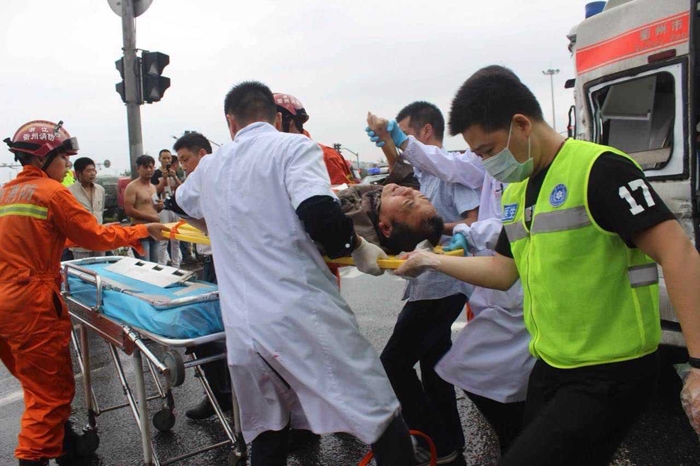 ??? 面對突如其來的撞擊,一瞬間讓急救車上的所有人不知所措。診療臺、氧氣罐側(cè)翻,玻璃碎片散落一地……車門已經(jīng)被擠壓變形,車上人員根本無法逃離?;颊呒覍僖荒橌@慌,“醫(yī)生,怎么辦?怎么辦?我害怕,救救我……”手足無措的她緊緊拉著劉龍群的手?!耙坏┭鯕夤薨l(fā)生爆炸,后果將不堪設(shè)想?!眲埲旱男念^也閃現(xiàn)了一絲恐懼,“不要害怕,我會在車上一直陪著你……” 他馬上安撫患者家屬?!袄潇o,救人要緊”,他在狹小的車廂內(nèi),艱難地將側(cè)翻壓在患者身上的診療臺推開,擦去患者臉上的玻璃碎渣,檢查生命體征……那一刻,職業(yè)的操守讓劉龍群在危難時刻來不及片刻的猶豫。