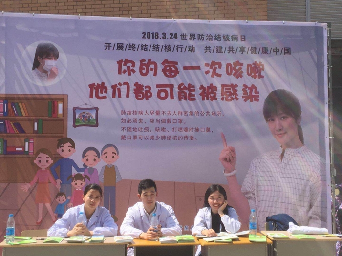 發(fā)放宣傳手冊、宣傳結(jié)核相關知識……在學校的支持下,活動進行得如火如荼。在場師生聽得很認真,并及時提出自己的困惑,許多年輕人也一同參與到防治結(jié)核的隊伍當中,向過往群眾宣傳結(jié)核知識。