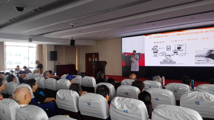 ??? 7月1日,衢州市人民醫(yī)院內(nèi)分泌科在門(mén)診5樓學(xué)術(shù)報(bào)告廳舉行了一場(chǎng)糖尿病知識(shí)講座,胡朝暉主任給大家?guī)?lái)了《糖尿病患者如何控制高血壓?》的主題講座,并為大家免費(fèi)監(jiān)測(cè)血糖,吸引了約40名糖友參加。