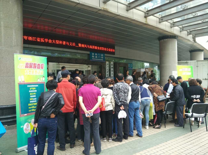 ??? 4月20日是“全民關(guān)注痛風(fēng)日”。這天早上,一場“防治高尿酸血癥”義診活動(dòng)在衢州市人民醫(yī)院門診大樓前廣場舉行,吸引了百余名市民前來就診咨詢。