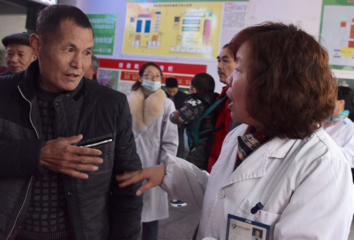 感染科護(hù)士長(zhǎng)林麗紅在向市民發(fā)放結(jié)核病防治資料并耐心講解結(jié)核病防治知識(shí)