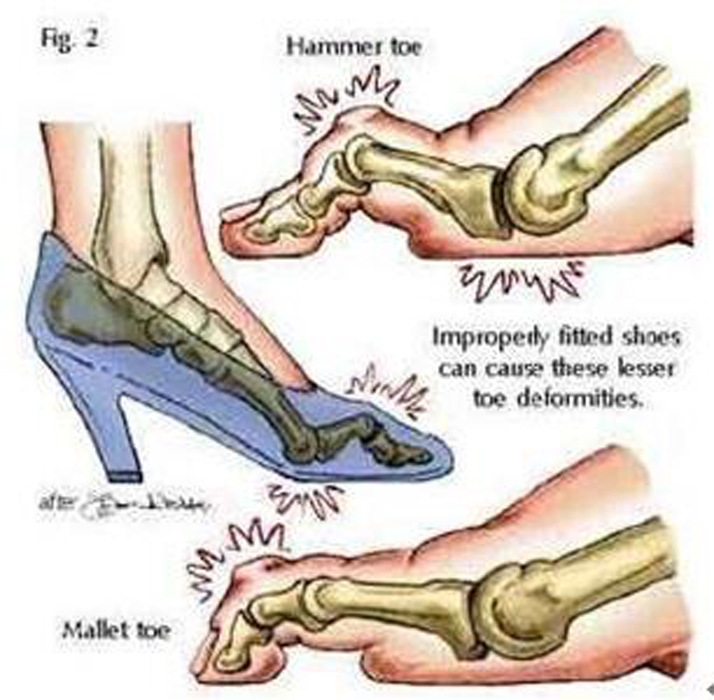 ??? 穿高跟鞋時,容易出現(xiàn)爪行趾這個問題,也就是在腳趾發(fā)力蹬地的時候,腳趾會蜷縮起來,同時前腳掌過度地壓向地面,這個過程稱為橫弓下陷,如果橫弓長期承受這樣的壓力,橫弓就會塌陷。