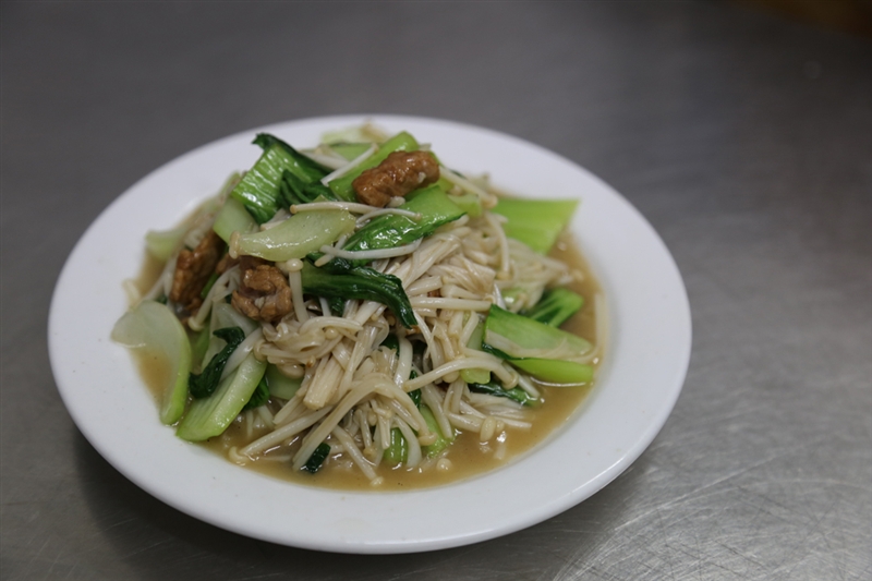 ??? 制作方法:1)將金針菇洗凈切成二段,油菜洗凈切成大段備用