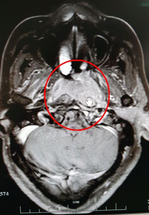 ??? 2015年6月,吳大姐來到衢州市人民醫(yī)院耳鼻咽喉科就診。經(jīng)CT檢查顯示鼻咽癌,活檢后進一步確診吳大姐的鼻咽癌已到中晚期。
