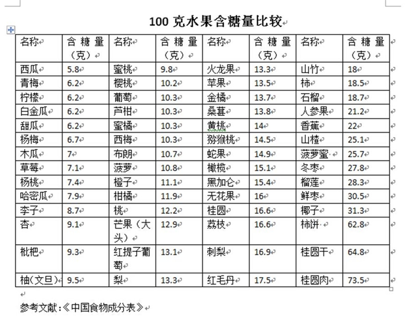 ??? 對(duì)于許多糖媽媽來說,能不能吃水果?可以吃哪些水果一直是個(gè)困擾。大部分患者對(duì)水果的選擇會(huì)根據(jù)水果的甜度來選擇,比如認(rèn)為火龍果不甜可以吃,西瓜很甜不能吃。而事實(shí)上水果的甜度是由本身所含的糖的種類及含量決定的,并不是越甜就代表這種水果含糖量越高。水果中所含的糖主要有果糖、葡萄糖、蔗糖。果糖的甜度是葡萄糖的2-3倍、是蔗糖的1.7倍??梢娝橇扛叩筒皇桥袛嗵鸲鹊奈ㄒ恢笜?biāo)。那么糖媽媽該如何選擇水果呢?