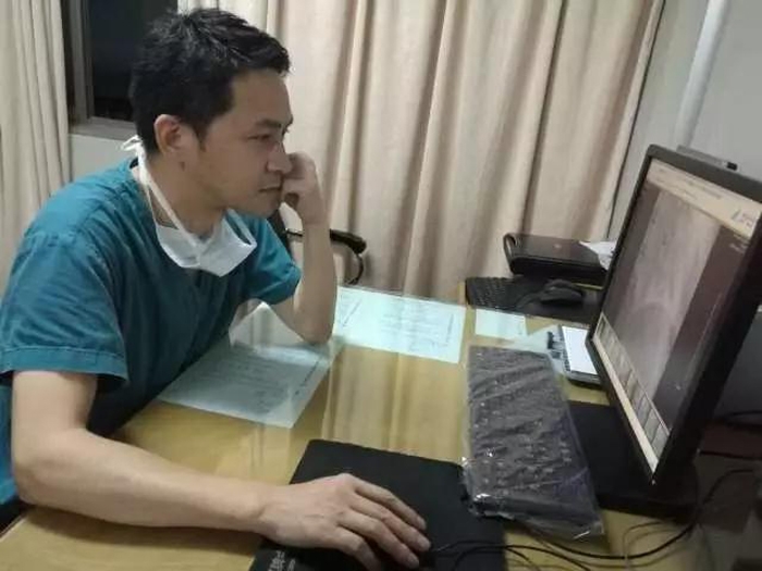 當天晚上,我們宣聯(lián)處的同事恰好在介入室捕捉到他工作時的忙碌身影。