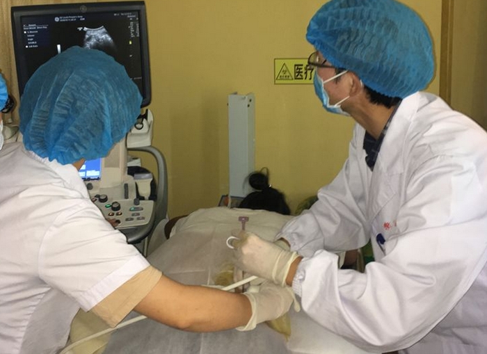 ??? 腎內(nèi)科吳金土主任醫(yī)師在當(dāng)?shù)亻_(kāi)展了首例長(zhǎng)期血透導(dǎo)管置管術(shù),并在和我院B超室邱俊芬醫(yī)師的配合下,在六枝特區(qū)人民醫(yī)院腎內(nèi)科及B超室共同完成了該院第一例腎穿刺術(shù)。術(shù)中、術(shù)后的注意事項(xiàng)及操作要點(diǎn),吳金土主任均親自教授,整個(gè)穿刺過(guò)程進(jìn)行得非常順利。