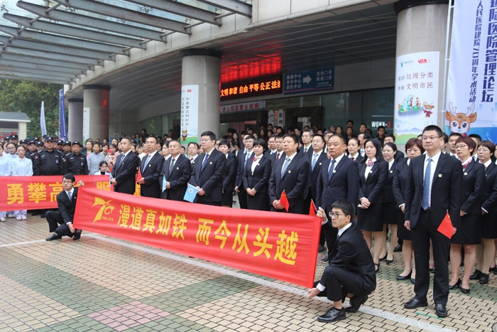 “70年來(lái)我們始終堅(jiān)持‘救死扶傷’的革命精神,秉承‘忠誠(chéng)、嚴(yán)謹(jǐn)、謙和、創(chuàng)新’的八字院風(fēng),始終把人民群眾的健康放在首位,推動(dòng)著醫(yī)院不斷向前發(fā)展?!秉h委書(shū)記徐天才在講話(huà)中表示,展望未來(lái),我院將站在新的起點(diǎn),面向新的使命,全體衢醫(yī)人將更加團(tuán)結(jié)一致,在市委“活力新衢州 美麗大花園”和“1433”戰(zhàn)略發(fā)展體系的引領(lǐng)下,傳承醫(yī)院優(yōu)良傳統(tǒng)。在新時(shí)代展示新作為、新?lián)?dāng),以高度的責(zé)任感、高尚的醫(yī)德和主人翁意識(shí)推動(dòng)四省邊際中心醫(yī)院再次揚(yáng)帆遠(yuǎn)航。