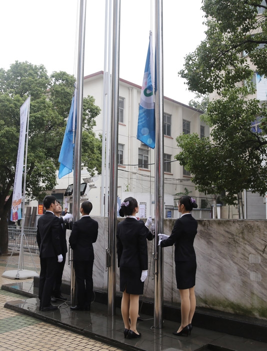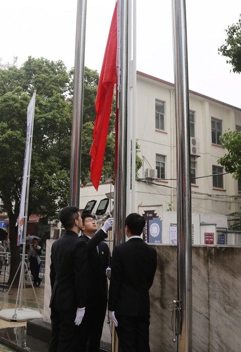 一曲《我愛(ài)你中國(guó)》薩克斯演奏拉開(kāi)了序幕,由院領(lǐng)導(dǎo)班子、臨床一線(xiàn)醫(yī)護(hù)人員代表、行政后勤員工、社會(huì)志愿者代表等組成的各大方隊(duì)共同列隊(duì)演唱。隨后,全體人員向國(guó)旗行注目禮,唱國(guó)歌,升旗儀式莊嚴(yán)隆重。在院歌聲中,有著扎根衢州、齊心協(xié)力、攜手同行寓意的我院院旗也隨之升起。