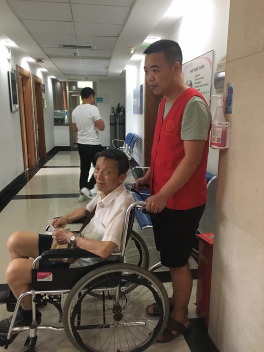 ??? 8月25日上午,在我院門診綜合服務(wù)中心,一位老奶奶想要租借輪椅,志愿者小徐立即跑上前熱心地說:“奶奶,我來幫你吧!”老奶奶開心地對小徐說:“謝謝你!我家老頭84歲了,孩子們都不在身邊,每次老頭生病我都不知道怎么辦好。現(xiàn)在醫(yī)院里有你們這些志愿者主動幫忙,真的很暖心!”小徐一邊安撫老人,一邊推著輪椅送老大爺?shù)较瘍?nèi)科就診,做檢查。小徐全程陪在老大爺身邊,直到把他送到急診科,安頓在病床上,才回到門診。