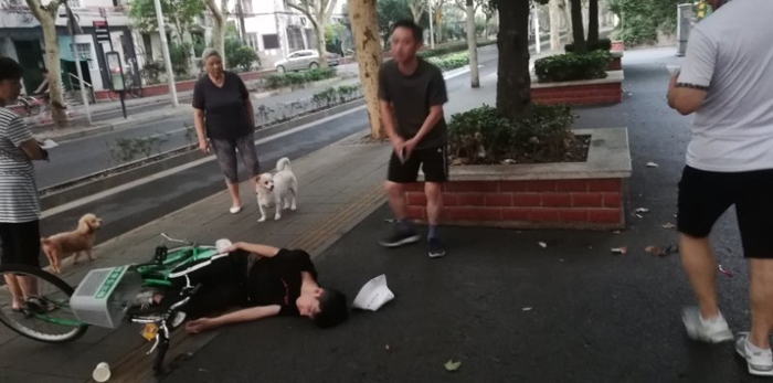 ??? 清晨5:35,正在晨跑額袁振飛途經(jīng)楊浦區(qū)政通路同濟中學(xué)門口時,看到一位青年突然倒地,事發(fā)突然,出于職業(yè)本能,袁振飛立即前往查看,同行的軍分區(qū)副司令陳鵬飛、民進市委會副主委徐根法同時參與施救。