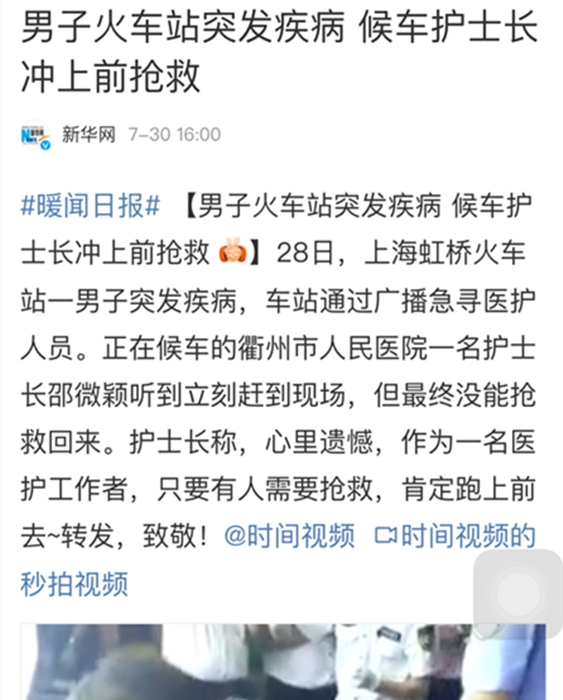 護士長車站救人獲千萬網(wǎng)友關(guān)注