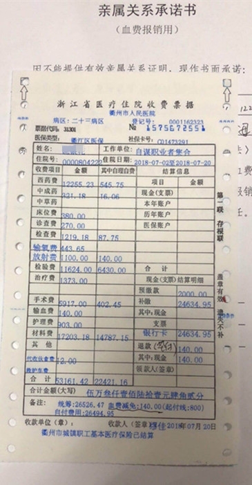 ??? 拿到住院收費(fèi)票據(jù),備注一欄清楚的顯示:血費(fèi)減免140元。