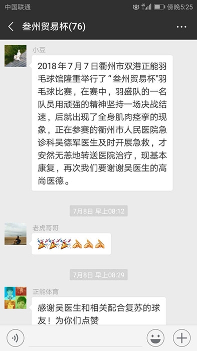 ??? “快來人啊,這里有人暈倒了!” 7月7日中午,衢州市雙港正能羽毛球館正在舉行羽毛球比賽,比賽現(xiàn)場突然傳來一陣呼救聲。同在羽毛球館參加比賽的吳德軍聽到呼救聲馬上跑過去。
