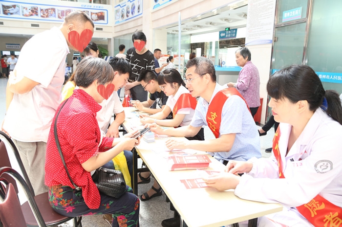 工作人員現(xiàn)場(chǎng)為群眾介紹醫(yī)快付APP的優(yōu)點(diǎn)并幫助安裝