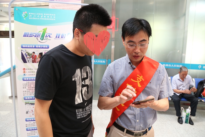 ??? 為了讓患者看病少排隊(duì)、付費(fèi)更便捷、檢查少跑路。6月13日,我院推出貼心服務(wù)——組織工作人員在門(mén)診一樓大廳推廣線上全流程移動(dòng)就醫(yī)服務(wù)。