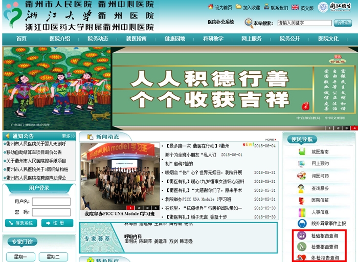 ??? 2.網(wǎng)站:登錄我院官方網(wǎng)站(http://onlyinvenice.com),在“便民導航”中根據(jù)檢查類型選擇查詢報告單和體檢報告。