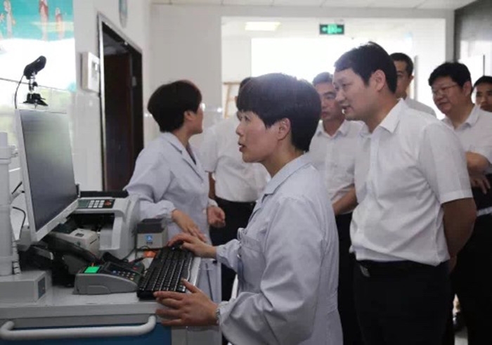 ??? 季根壽一行先后查看了黨員志愿者服務(wù)崗、門診綜合服務(wù)中心、入院準備中心和內(nèi)鏡預(yù)約中心等區(qū)域,針對“最多跑一次”工作標準,詳細了解預(yù)約掛號、自助服務(wù)、診間結(jié)算、病區(qū)(移動)結(jié)算等環(huán)節(jié)的流程,并查看了現(xiàn)場工作人員實地操作演示。