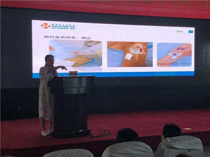 ??? 浙江大學(xué)醫(yī)學(xué)院附屬邵逸夫醫(yī)院PICC??谱o士長趙林芳老師授課"血管通路的早期評估",她用自己多年的工作經(jīng)驗與積累,讓學(xué)員們深刻意識到了在靜脈治療中由被動輸液轉(zhuǎn)向主動輸液的重要性。